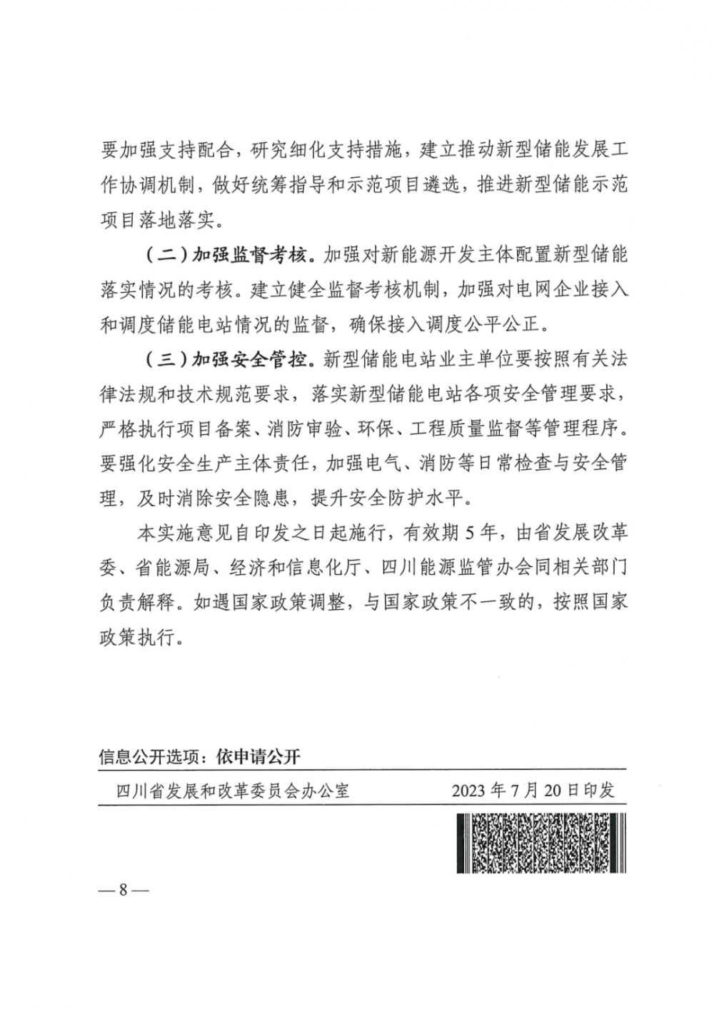 日前,四川省發(fā)改委、四川省能源局、四川省經(jīng)濟(jì)和信息化廳、國(guó)家能源局四川監(jiān)管辦公室聯(lián)合印發(fā)《關(guān)于加快推動(dòng)四川省新型儲(chǔ)能示范項(xiàng)目建設(shè)的實(shí)施意見(jiàn)》,提出到2025年全省新型儲(chǔ)能規(guī)模達(dá)200萬(wàn)千瓦以上。具體規(guī)定如下: