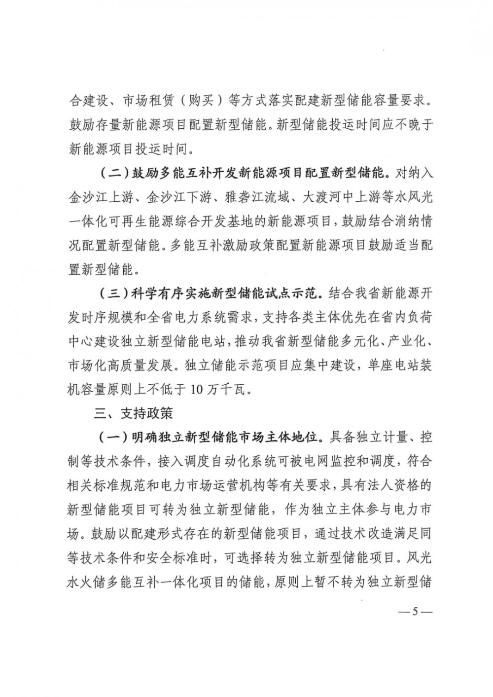 鼓勵(lì)多能互補(bǔ)開(kāi)發(fā)新能源項(xiàng)目配置新型儲(chǔ)能。對(duì)納入金沙江上游、金沙江下游、雅礱江流域、大渡河中上游等水風(fēng)光一體化可再生能源綜合開(kāi)發(fā)基地的新能源項(xiàng)目,鼓勵(lì)結(jié)合消納情況配置新型儲(chǔ)能