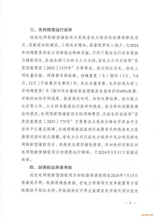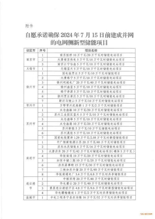 3月11日,江蘇省發(fā)改委發(fā)布《我省電力保供政策性保障電網(wǎng)側(cè)新型儲(chǔ)能項(xiàng)目開(kāi)展容量租賃的聯(lián)系方式》,文件表示,為進(jìn)一步加快電網(wǎng)側(cè)新型儲(chǔ)能項(xiàng)目并網(wǎng)頂峰工作,經(jīng)多次協(xié)調(diào)和反復(fù)梳理,目前全省有41個(gè)已納規(guī)的電網(wǎng)側(cè)新型儲(chǔ)能項(xiàng)目自愿承諾確保在2024年7月15日前建成并網(wǎng),該批項(xiàng)目我省將予以重點(diǎn)支持和保障。根據(jù)“蘇發(fā)改能源發(fā)〔2024〕226號(hào)”文件要求,現(xiàn)公布項(xiàng)目單位的聯(lián)系方式,鼓勵(lì)我省可再生能源發(fā)電市場(chǎng)化項(xiàng)目業(yè)主單位優(yōu)先與這批儲(chǔ)能項(xiàng)目聯(lián)系洽談儲(chǔ)能容量租賃事宜。