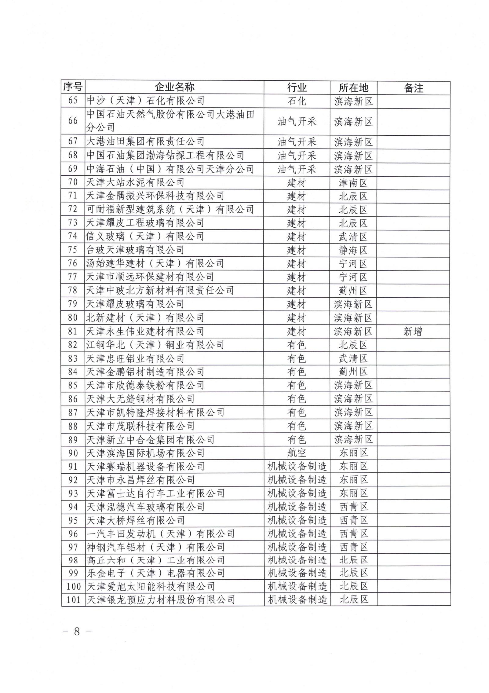 (一)納入天津市碳排放權交易配額管理的單位,包括鋼鐵、化工、石化、建材、油氣開采、有色、機械設備制造、農(nóng)副食品加工、電子設備制造、食品飲料、醫(yī)藥制造、礦山等工業(yè)行業(yè)和航空運輸業(yè)(機場)溫室氣體年排放量達2萬噸二氧化碳當量(綜合能源消費量約1萬噸標準煤)及以上的單位(附件1中序號1-154,以下簡稱“納入企業(yè)”)。
