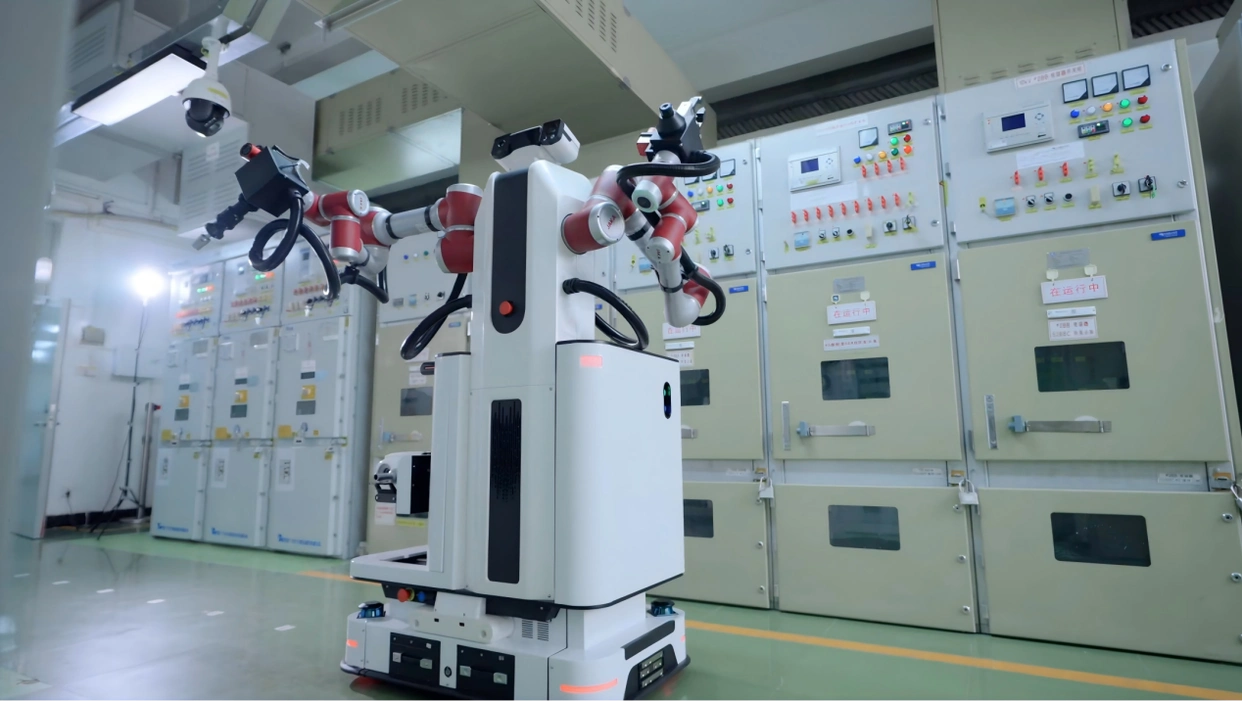 位于南方電網廣東廣州供電局的一座220千伏變電站高壓室內,全球首臺全向移動雙臂協(xié)作機器人“智運”正在高壓帶電環(huán)境中平穩(wěn)執(zhí)行巡檢和操作任務。