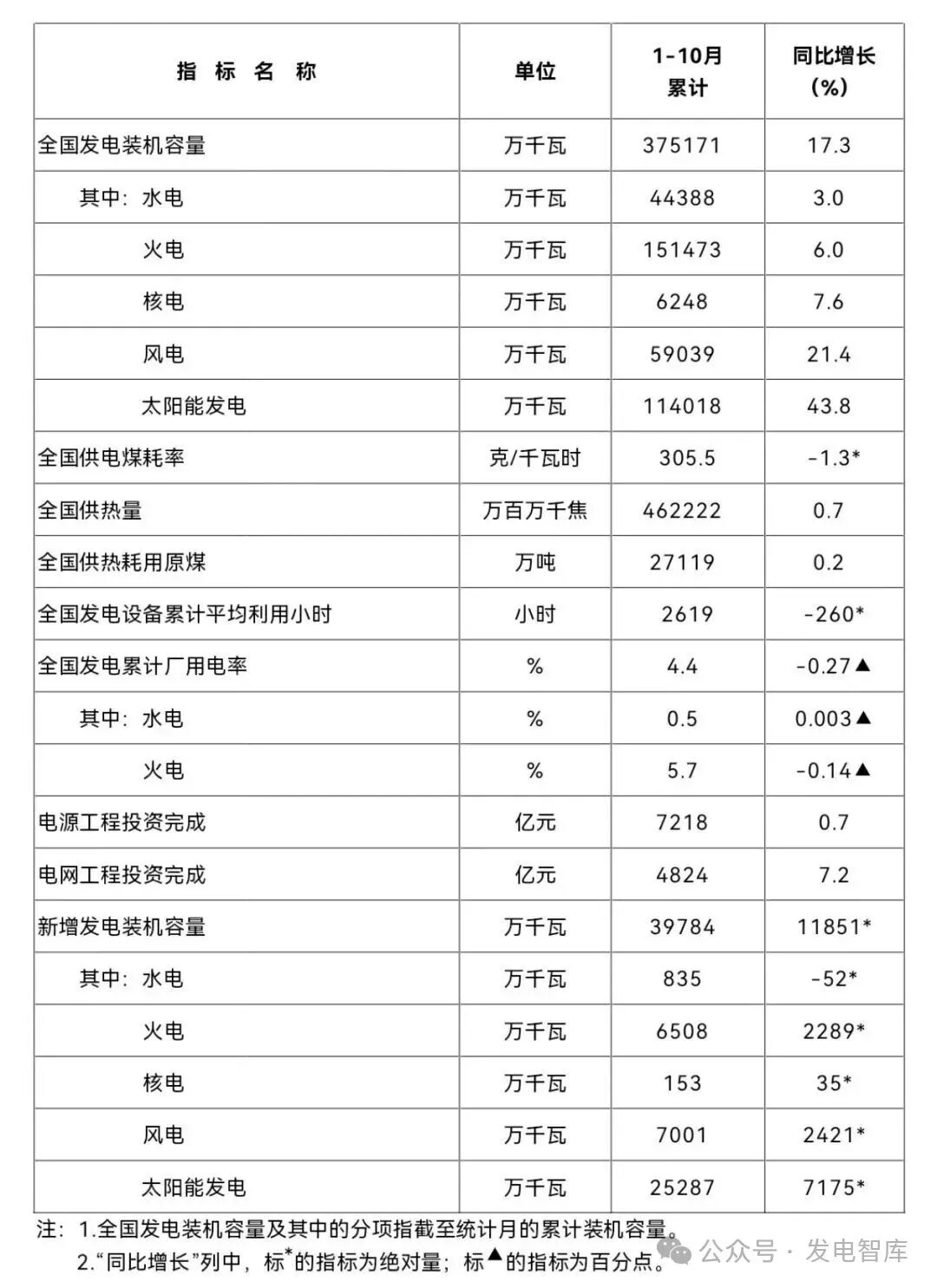 11月24日,國家能源局發(fā)布1-10月份全國電力工業(yè)統(tǒng)計數(shù)據(jù)。