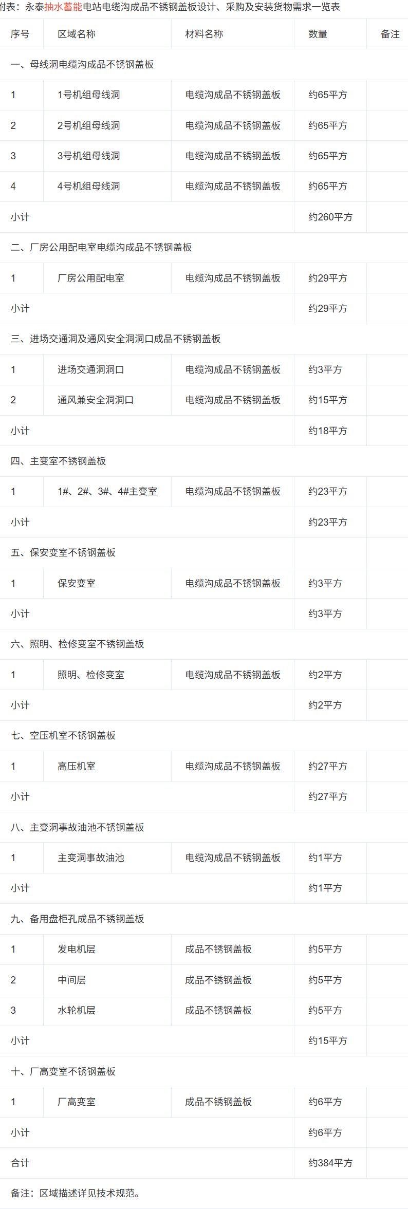 永泰抽水蓄能電站電纜溝成品不銹鋼蓋板設(shè)計(jì)、采購(gòu)及安裝招標(biāo)公告