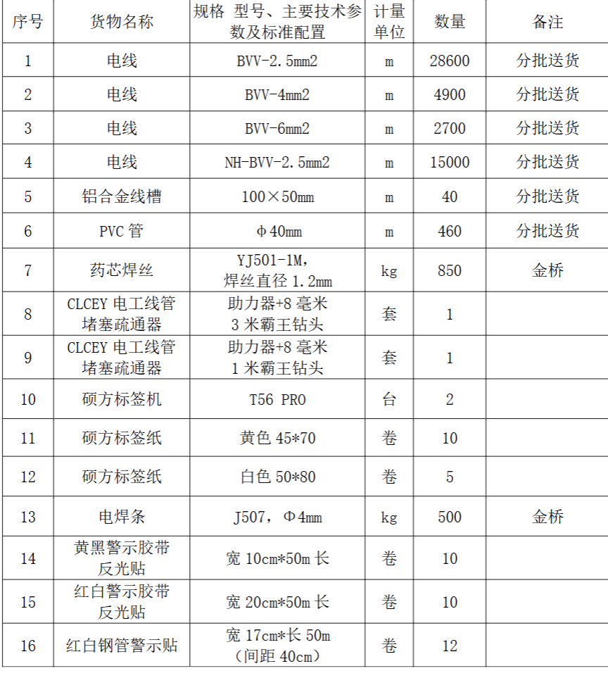 因 中國(guó)電建水電十四局廣東中洞抽水蓄能電站機(jī)電安裝項(xiàng)目部電線、焊絲等材料采購(gòu)項(xiàng)目需要,我單位擬采用競(jìng)價(jià)采購(gòu)(公開(kāi)詢比價(jià))方式進(jìn)行下列貨物的批量采購(gòu),請(qǐng)按以下要求于 2025 年 08 月 29 日16 時(shí) 00 分前將報(bào)價(jià)文件提交至中國(guó)電建集中采購(gòu)平臺(tái)。