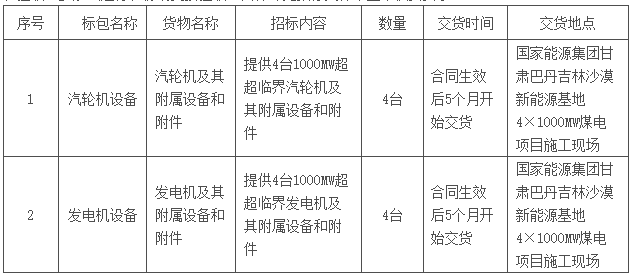 近日,國(guó)家能源集團(tuán)發(fā)布甘肅巴丹吉林4×1000MW項(xiàng)目電站鍋爐及附屬設(shè)備、汽輪機(jī)、汽輪發(fā)電機(jī)及附屬設(shè)備公開(kāi)招標(biāo)項(xiàng)目招標(biāo)公告。