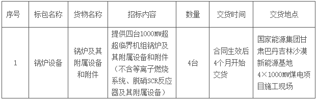 國(guó)家能源集團(tuán)2025年11月電站鍋爐及附屬設(shè)備(甘肅巴丹吉林4×1000MW)公開(kāi)招標(biāo)項(xiàng)目招標(biāo)公告
