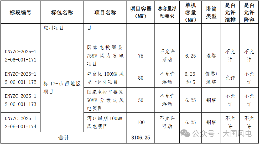 建設(shè)規(guī)模:第四批風(fēng)力發(fā)電機組規(guī)?;?,包括采購容量3106.25MW。