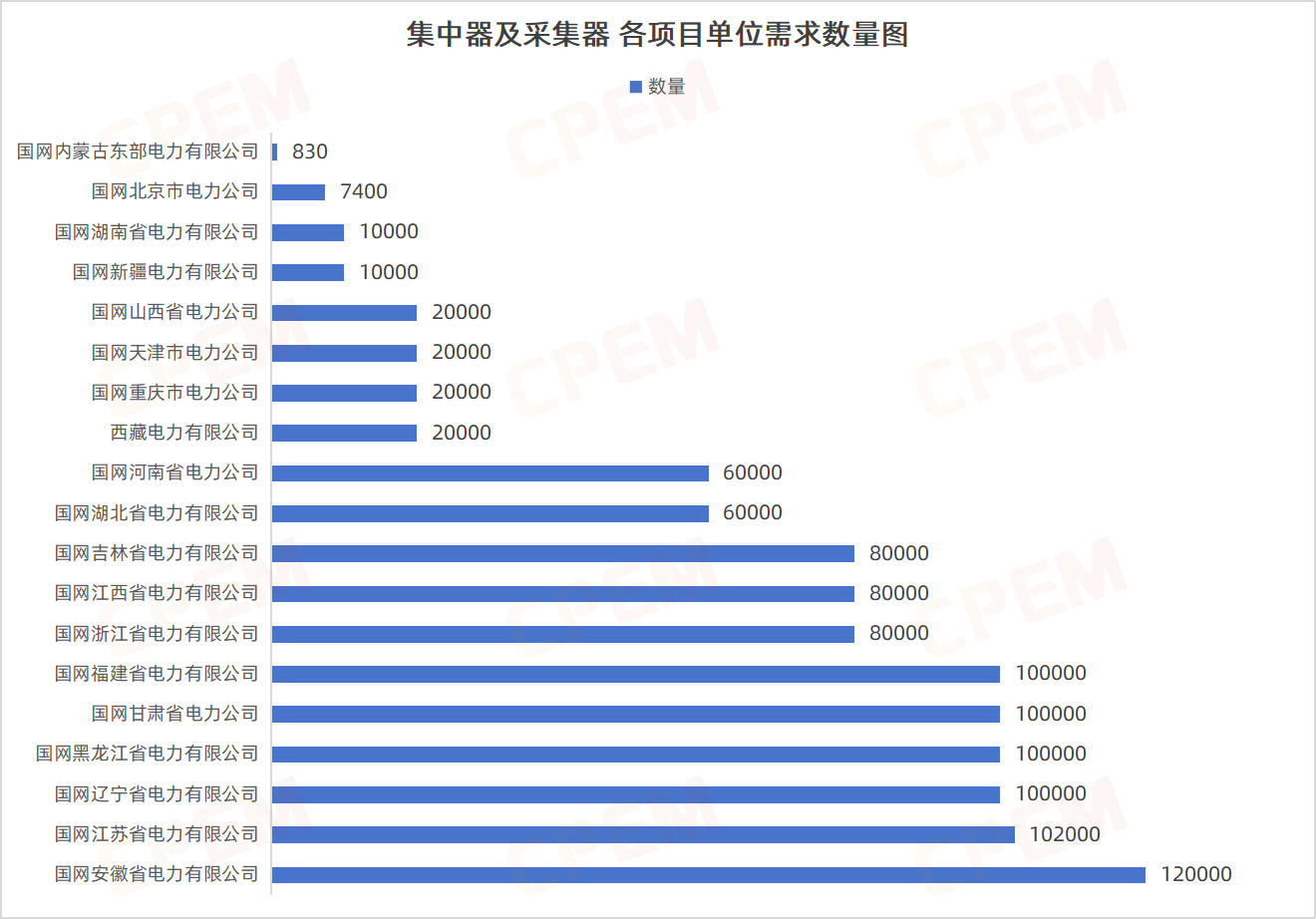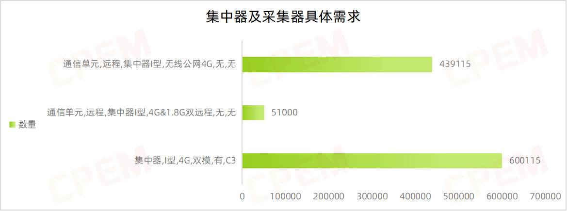 集中器及采集器招標(biāo)項目單位共計19個,其中國網(wǎng)安徽省電力有限公司需求數(shù)量最多,國網(wǎng)江蘇省電力有限公司、國網(wǎng)遼寧省電力有限公司、國網(wǎng)黑龍江省電力有限公司、國網(wǎng)甘肅省電力公司、國網(wǎng)福建省電力有限公司緊隨其后,集中器,I型,4G,雙模,有,C3該款產(chǎn)品的需求量最大,達600115臺。
