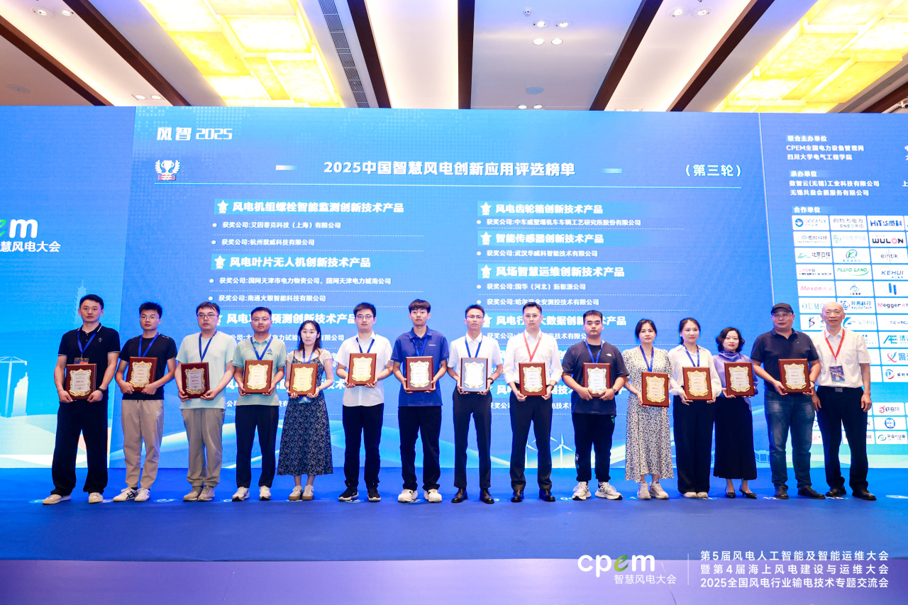 大會(huì)期間,「風(fēng)智」2025中國智慧風(fēng)電創(chuàng)新應(yīng)用評(píng)選獲獎(jiǎng)名單公布并舉行了頒獎(jiǎng)典禮。