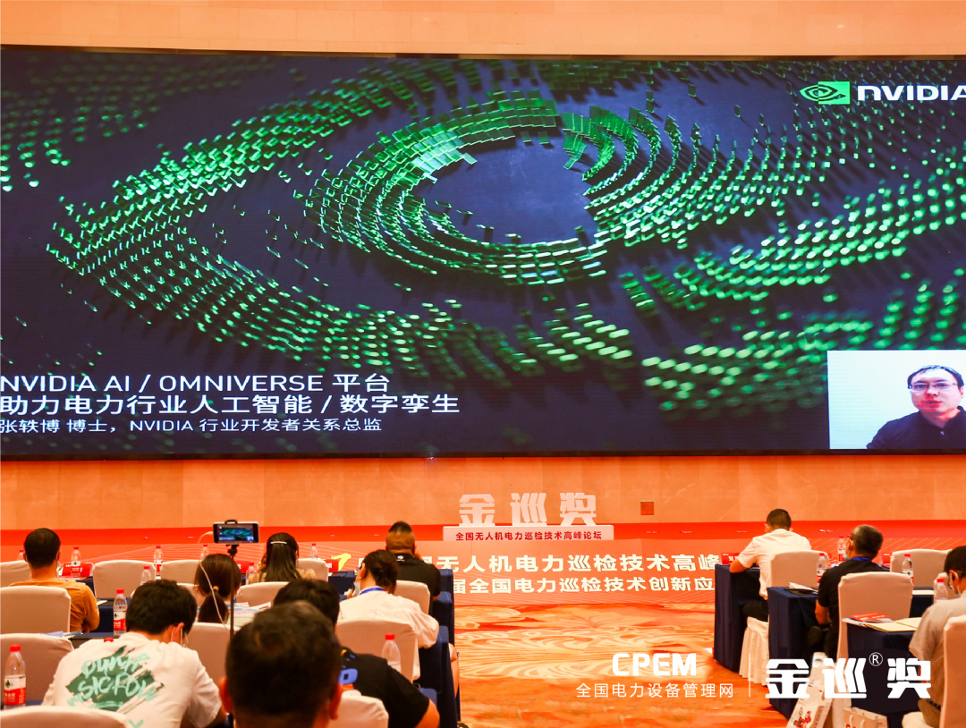 NVIDIA 開發(fā)者發(fā)展總監(jiān)張軼博、國網(wǎng)福建省電力有限公司電力科學(xué)研究院設(shè)備中心四級職員陳伯建分別作《NVIDIA AI / Omniverse平臺助力電力行業(yè)人工智能 / 數(shù)字孿生》與《無人機(jī)自主巡檢規(guī)?;瘧?yīng)用保障措施》。