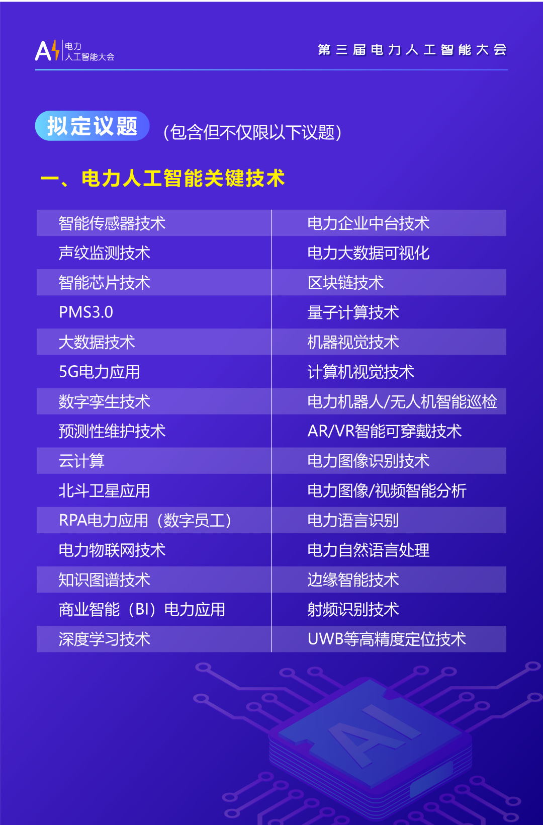 為進(jìn)一步推動電力人工智能技術(shù)落地發(fā)展,落實(shí)關(guān)鍵技術(shù)等要點(diǎn),更好地應(yīng)對電力領(lǐng)域新的市場機(jī)遇與挑戰(zhàn),為電力人工智能領(lǐng)域搭建一個(gè)了解政策、交流技術(shù)、洞悉市場以及企業(yè)開展戰(zhàn)略合作的前沿平臺,預(yù)計(jì)將有1000位行業(yè)代表出席。