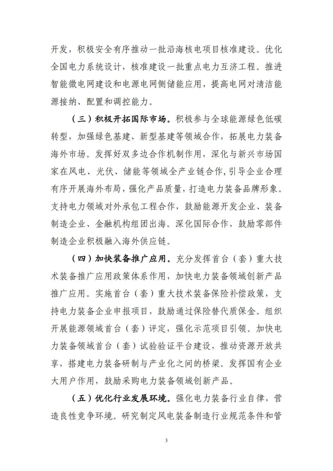 積極開拓國際市場。積極參與全球能源綠色低碳轉型,加強綠色基建、新型基建等領域合作,拓展電力裝備海外市場。發(fā)揮好雙多邊合作機制作用,深化與新興市場國家在風電、光伏、儲能等領域全產(chǎn)業(yè)鏈合作,引導企業(yè)合理有序開展海外布局,強化產(chǎn)品質(zhì)量,打造電力裝備品牌形象。支持電力領域?qū)ν獬邪こ毯献?,鼓勵能源開發(fā)企業(yè)、裝備制造企業(yè)、金融機構組團出海。深化國際合作,鼓勵零部件制造企業(yè)積極融入海外供應鏈。