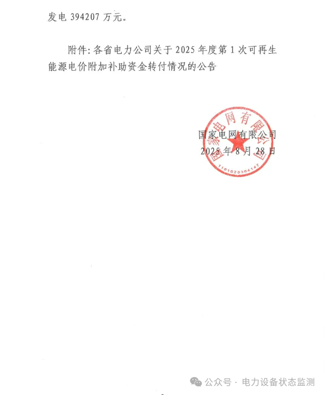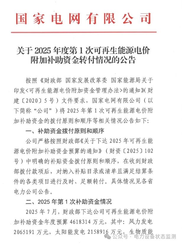 9月15日,國網(wǎng)新能源云發(fā)布國家電網(wǎng)有限公司關(guān)于2025年度第1次可再生能源電價(jià)附加補(bǔ)助資金轉(zhuǎn)付情況的公告。
