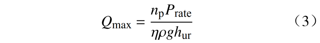 盡管利用一臺(tái)機(jī)器會(huì)節(jié)省成本,但由于可逆泵存在嚴(yán)重的非線性和振動(dòng)的特點(diǎn),必須對(duì)其進(jìn)行一定的限制約束。通過可逆泵的最大水流速Q(mào)max計(jì)算為
