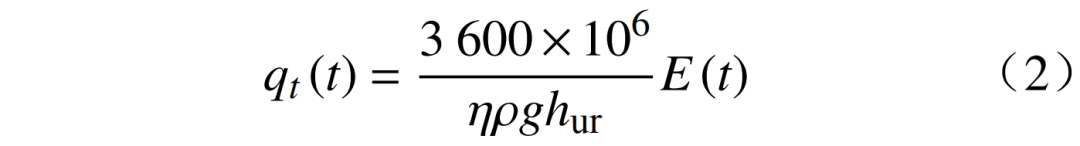 式中:η為可逆泵效率;ρ為水密度;g為勢(shì)能參數(shù);hur為上水庫的高度;E(t)為t時(shí)刻輸入到可逆式泵渦輪機(jī)的能量。
