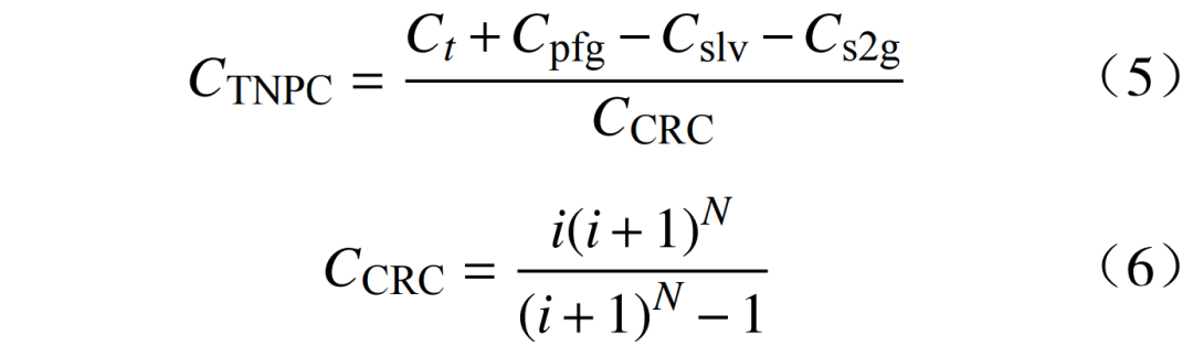使用成本回收系數(shù)(cost recovery coefficient,CRC)CCRC計(jì)算總凈現(xiàn)值成本(total net present cost,TNPC)CTNPC為