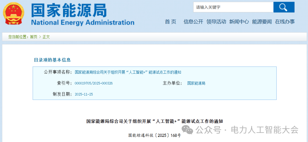 國家能源局綜合司關(guān)于組織開展“人工智能+”能源試點工作的通知