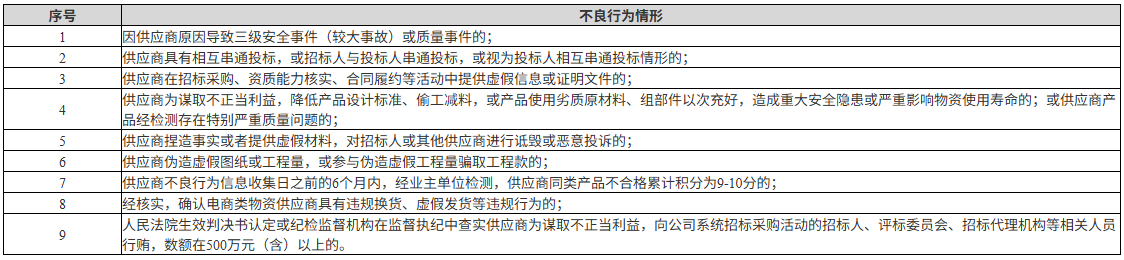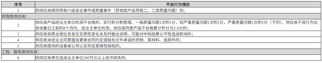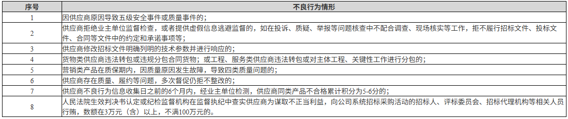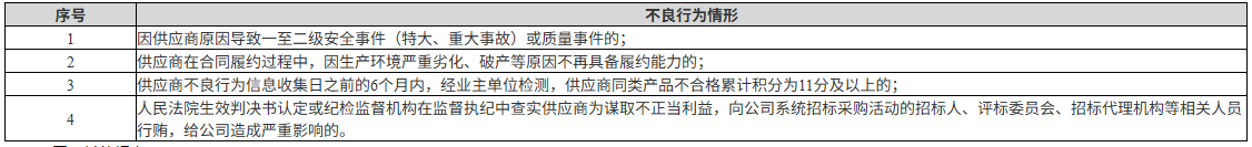 屬于總部實(shí)施招標(biāo)采購(gòu)范圍的供應(yīng)商不良行為,由總部做出處理決定,在公司系統(tǒng)內(nèi)執(zhí)行。
