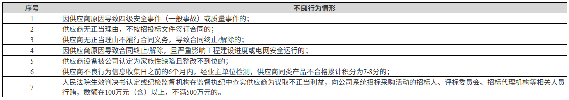 各單位實(shí)施招標(biāo)采購(gòu)范圍的供應(yīng)商不良行為,在總部供應(yīng)商不良行為處理信息公示之前6個(gè)月內(nèi)(以各單位供應(yīng)商不良行為處理公布日期為準(zhǔn)),供應(yīng)商被任何1家單位列入黑名單的,或同一供應(yīng)商同類產(chǎn)品因質(zhì)量問(wèn)題被2家及以上單位暫停中標(biāo)資格,由總部做出擴(kuò)大處理決定,并在公司系統(tǒng)內(nèi)執(zhí)行。各單位自行制訂抽檢規(guī)范的產(chǎn)品,因抽檢質(zhì)量問(wèn)題被暫停中標(biāo)資格的,總部不做擴(kuò)大處理。