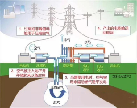 (壓縮空氣儲(chǔ)能工作原理) 圖源:網(wǎng)絡(luò),如有侵權(quán)留言可刪