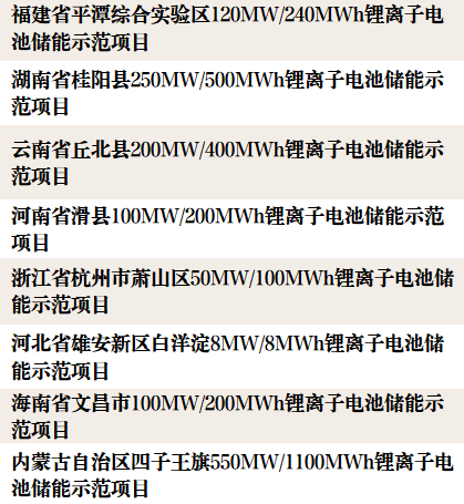 新型儲(chǔ)能試點(diǎn)示范項(xiàng)目名單