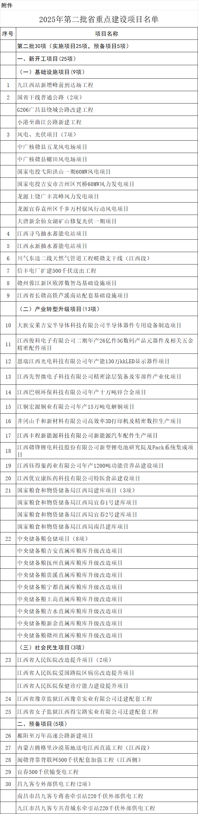 江西省發(fā)展改革委關(guān)于下達(dá)2025年第二批省重點(diǎn)建設(shè)項(xiàng)目計(jì)劃的通知