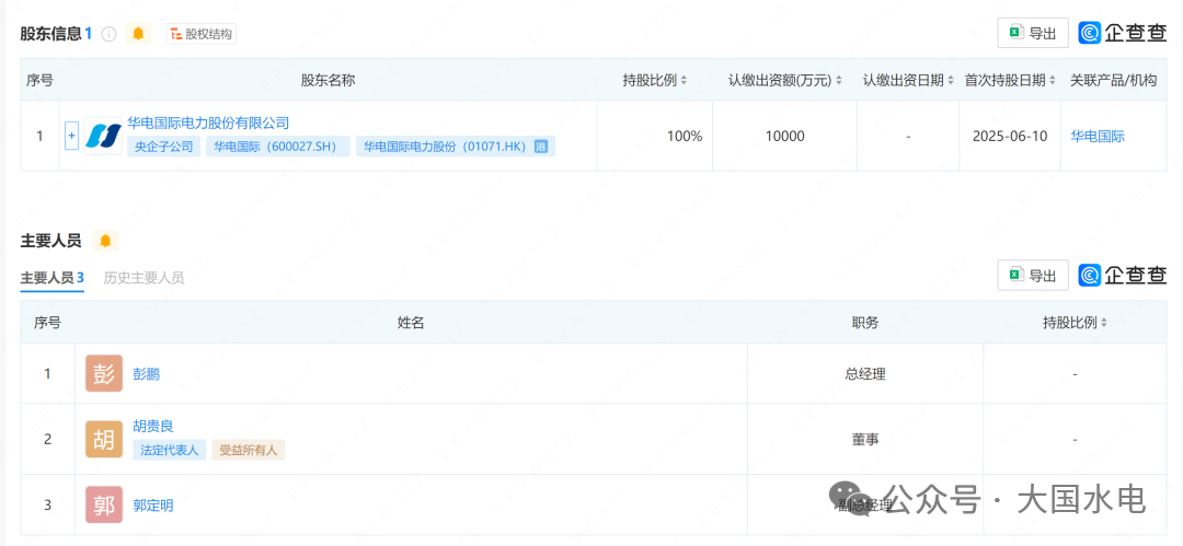 6月10日,CPEM大國水電從企查查獲悉華電抽蓄工程管理(成都)有限公司成立!法人胡貴良,注冊資本1億元,股東為華電國際電力股份有限公司。據(jù)CPEM大國水電獲悉華電抽蓄工程管理(成都)有限公司于6月3日在成都組織召開成立大會暨第一次干部職工大會與進駐靖宇項目動員會。