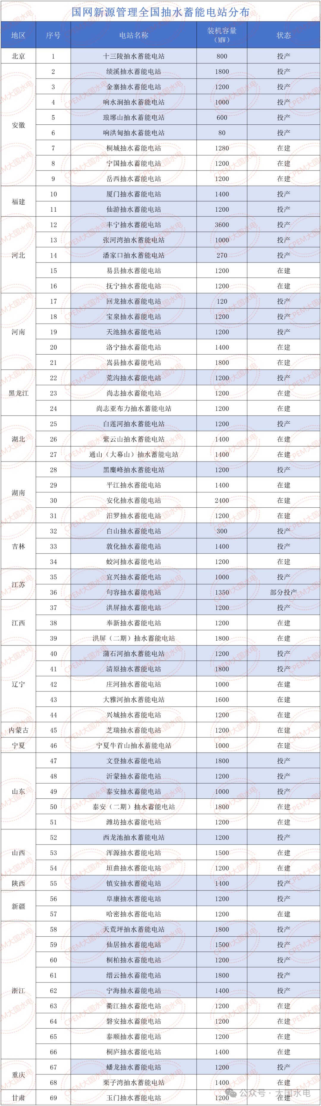 國(guó)網(wǎng)新源抽水蓄能電站分布覆蓋全國(guó)多個(gè)省份,截至2025年9月底,管理抽水蓄能電站69座,管理裝機(jī)容量9313.4萬千瓦,以下是CPEM大國(guó)水電整理的已投產(chǎn)和在建電站分布及關(guān)鍵信息: