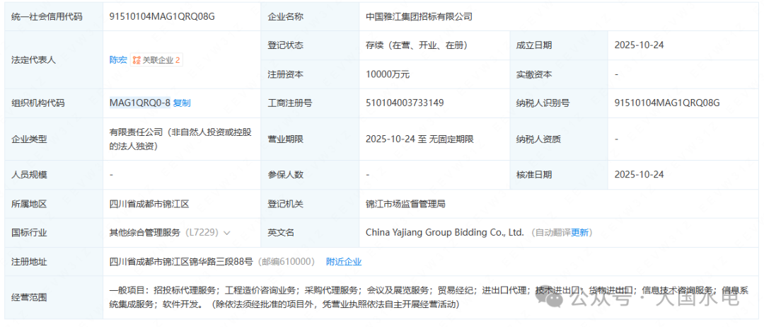 10月24日,中國雅江集團招標有限公司成立,負責人:陳宏,注冊地址:四川省成都市錦江區(qū)錦華路三段88號。經(jīng)營范圍:一般項目:招投標代理服務(wù);工程造價咨詢業(yè)務(wù);采購代理服務(wù);會議及展覽服務(wù);貿(mào)易經(jīng)紀;進出口代理;技術(shù)進出口;貨物進出口;信息技術(shù)咨詢服務(wù);信息系統(tǒng)集成服務(wù);軟件開發(fā)。(除依法須經(jīng)批準的項目外,憑營業(yè)執(zhí)照依法自主開展經(jīng)營活動)