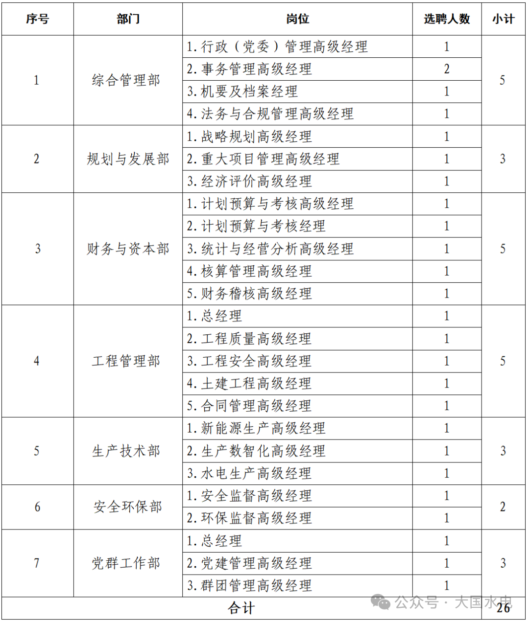 11月28日,國(guó)家電投再發(fā)布《國(guó)家電投集團(tuán)水電產(chǎn)業(yè)平臺(tái)公司籌備組公開(kāi)選聘公告》,面向國(guó)家電投集團(tuán)系統(tǒng)內(nèi)公開(kāi)選聘工程管理部總經(jīng)理、黨群工作部總經(jīng)理等25崗共計(jì)26人。