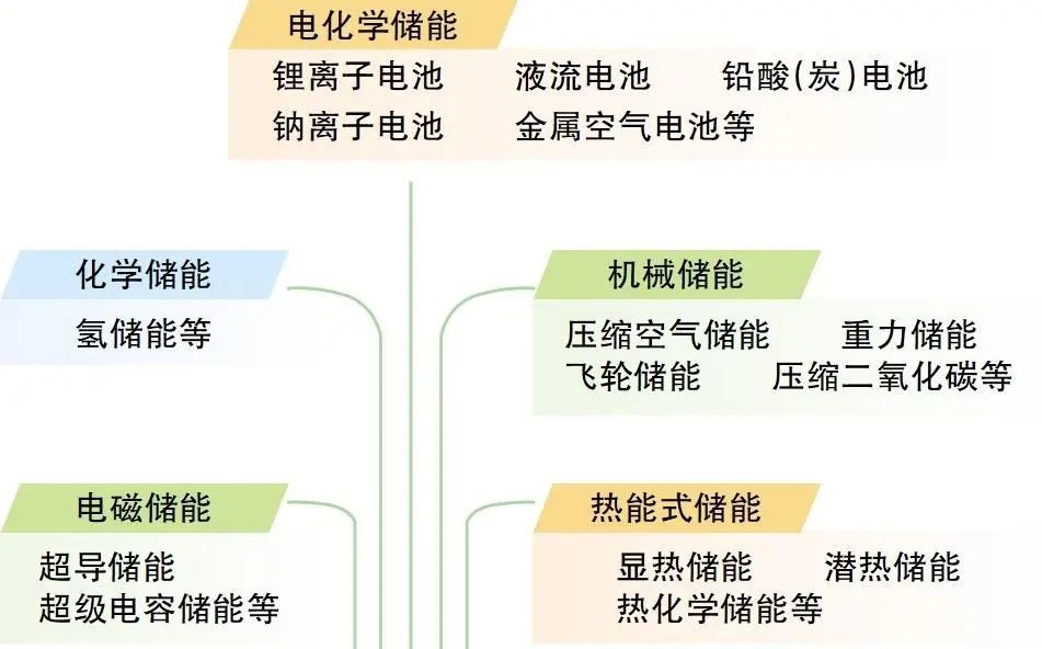 新型儲(chǔ)能以電力為主要輸出形式,并提供調(diào)峰、調(diào)頻、黑啟動(dòng)等服務(wù),包括鋰離子電池儲(chǔ)能、液流電池儲(chǔ)能、鉛酸(炭)電池儲(chǔ)能、鈉離子電池儲(chǔ)能、氫儲(chǔ)能、壓縮空氣儲(chǔ)能、重力儲(chǔ)能、飛輪儲(chǔ)能、超導(dǎo)儲(chǔ)能和熱能式儲(chǔ)能等。新型儲(chǔ)能可改變電力系統(tǒng)傳統(tǒng)即發(fā)即用方式。