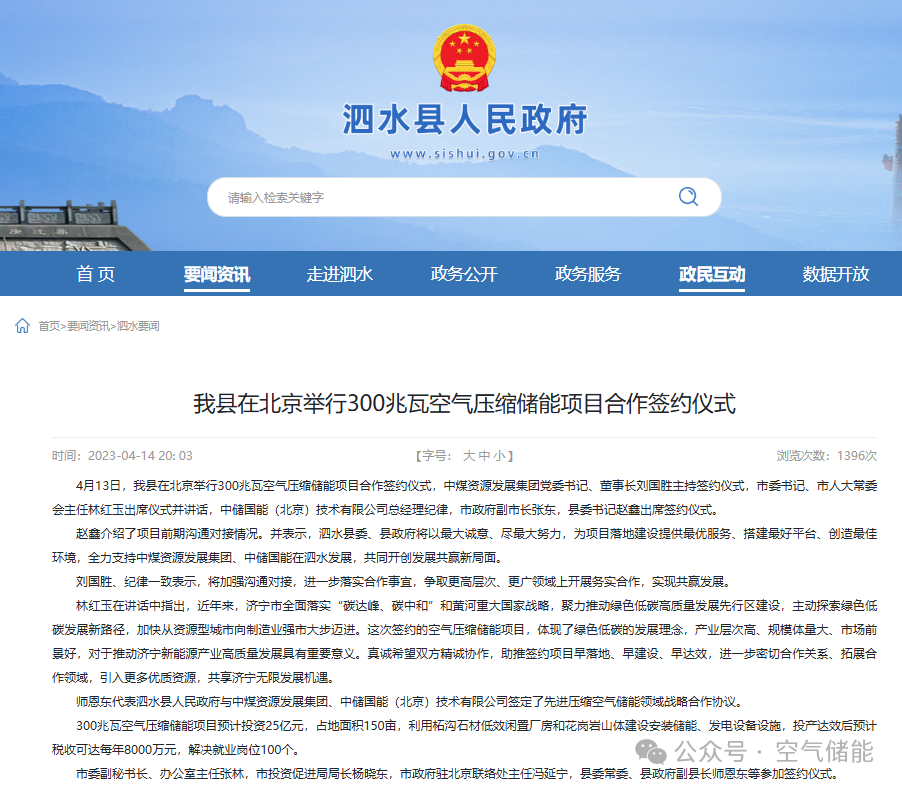 山東省濟(jì)寧市泗水縣300MW/1200MWh先進(jìn)壓縮空氣儲(chǔ)能項(xiàng)目由中儲(chǔ)國(guó)能(北京)技術(shù)有限公司聯(lián)合美錦能源集團(tuán)有限公司等企業(yè)共同投資建設(shè)??偼顿Y額約20億元。占地面積約120-150畝,利用柘溝鎮(zhèn)石材產(chǎn)業(yè)低效閑置廠房及花崗巖山體資源建設(shè)。