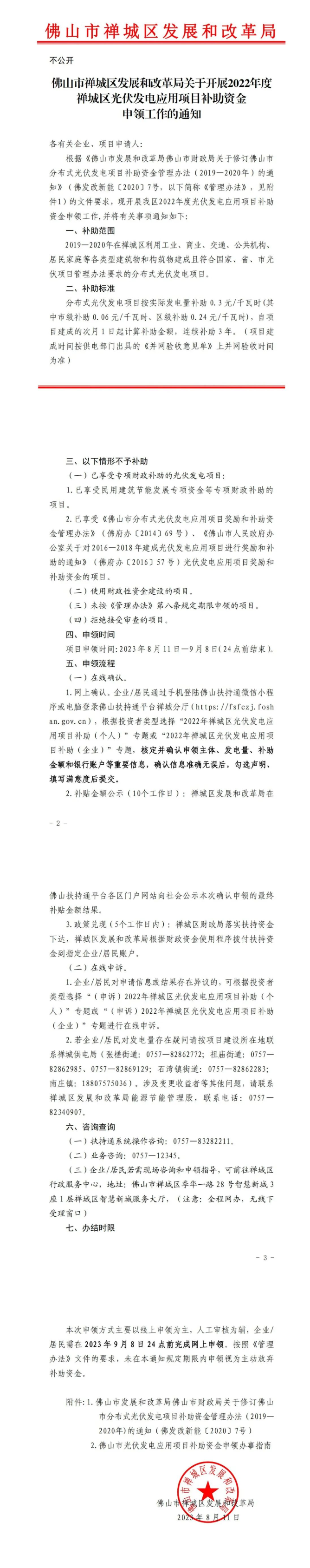 8月11日,廣東省佛山市禪城區(qū)發(fā)展和改革局關(guān)于開展2022年度禪城區(qū)光伏發(fā)電應(yīng)用項(xiàng)目補(bǔ)助資金申領(lǐng)工作的通知。