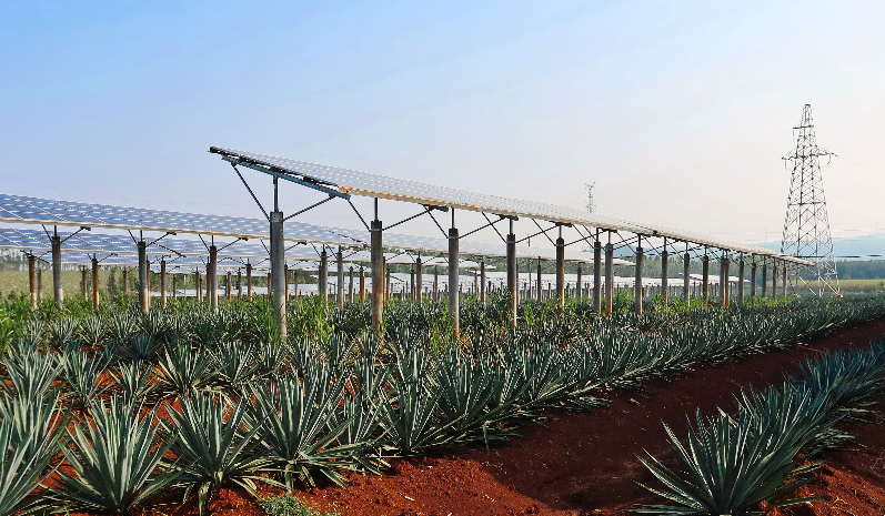 通過光伏板的合理排列,微型農(nóng)業(yè)播種機和施肥設(shè)備等在光伏陣列間暢通無阻地穿梭作業(yè),極大提升了工作效率,實現(xiàn)陽光、土地資源的立體高效利用,達(dá)到“一地多用、效益倍增”的效果,為探索光伏農(nóng)業(yè)無人農(nóng)場打下堅實基礎(chǔ)。該項目種植的劍麻每畝產(chǎn)量約5噸,每噸約200元(鮮劍麻)。