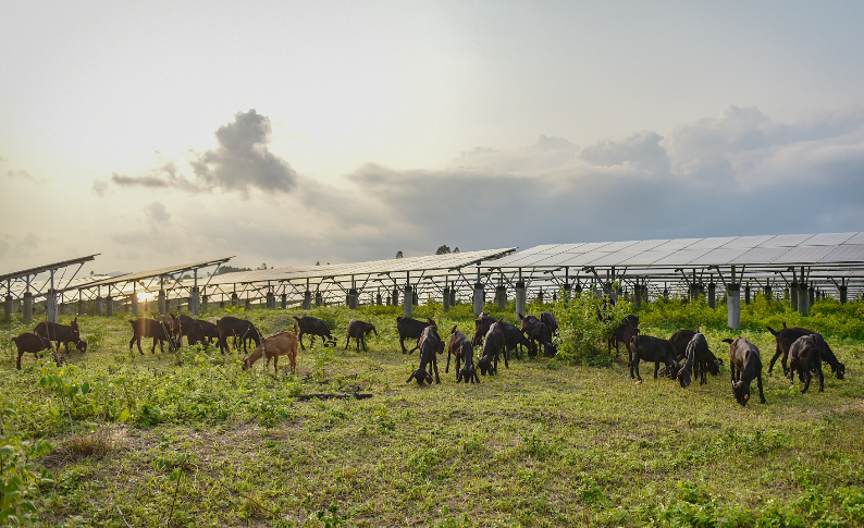 在陽江市陽西縣,作為開發(fā)公司首個光伏農(nóng)場,廣東粵電織篢農(nóng)場21隊農(nóng)業(yè)光伏綜合開發(fā)項目通過利用光伏板下方空間,探索式開展光伏板下黑山羊、走地雞、豬等養(yǎng)殖以及火龍果、魔芋等農(nóng)作物的種植,打破光伏復(fù)合項目只有“光”沒有“農(nóng)”的局面,使得項目蛻變?yōu)橐粋€集清潔能源發(fā)電、農(nóng)業(yè)種植養(yǎng)殖于一體的生態(tài)環(huán)保項目,項目于2018年榮獲“廣東省農(nóng)業(yè)光伏示范基地”。