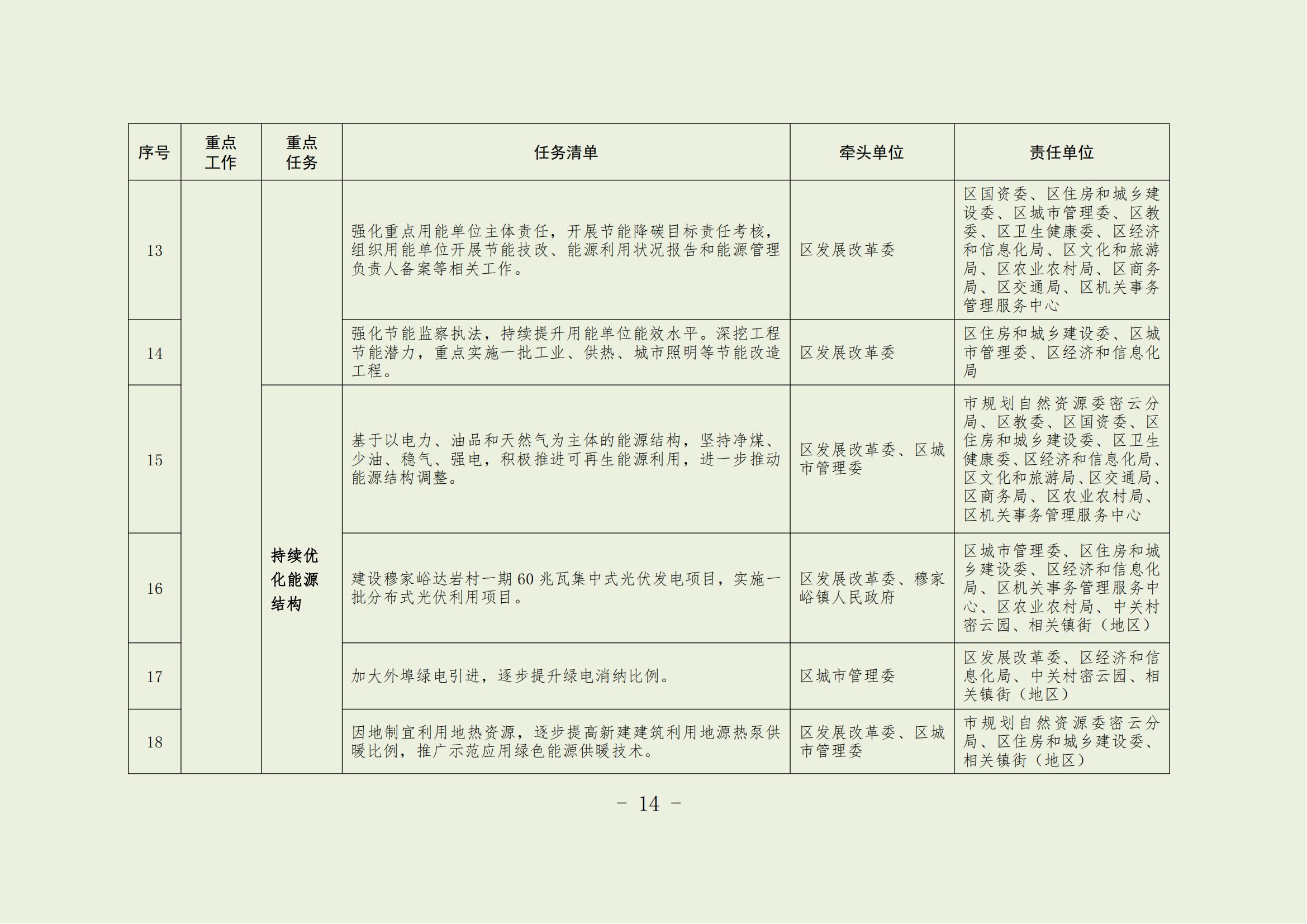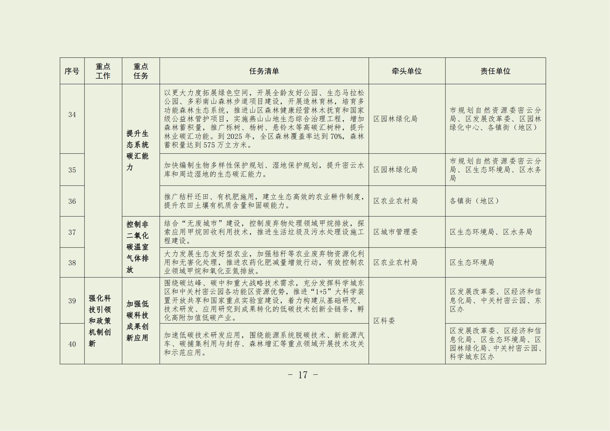 15.提升統(tǒng)計、計量和監(jiān)測能力。配合市級部門建立并落實全市碳排放統(tǒng)計核算體系,建立健全建筑、可再生能源等重點領(lǐng)域能耗和碳排放計量、監(jiān)測和統(tǒng)計體系。開展區(qū)級溫室氣體排放清單編制工作。配合市級部門開展森林、草地、濕地、土壤等生態(tài)系統(tǒng)碳匯本底調(diào)查和碳儲量評估。探索非二氧化碳溫室氣體監(jiān)測統(tǒng)計。
